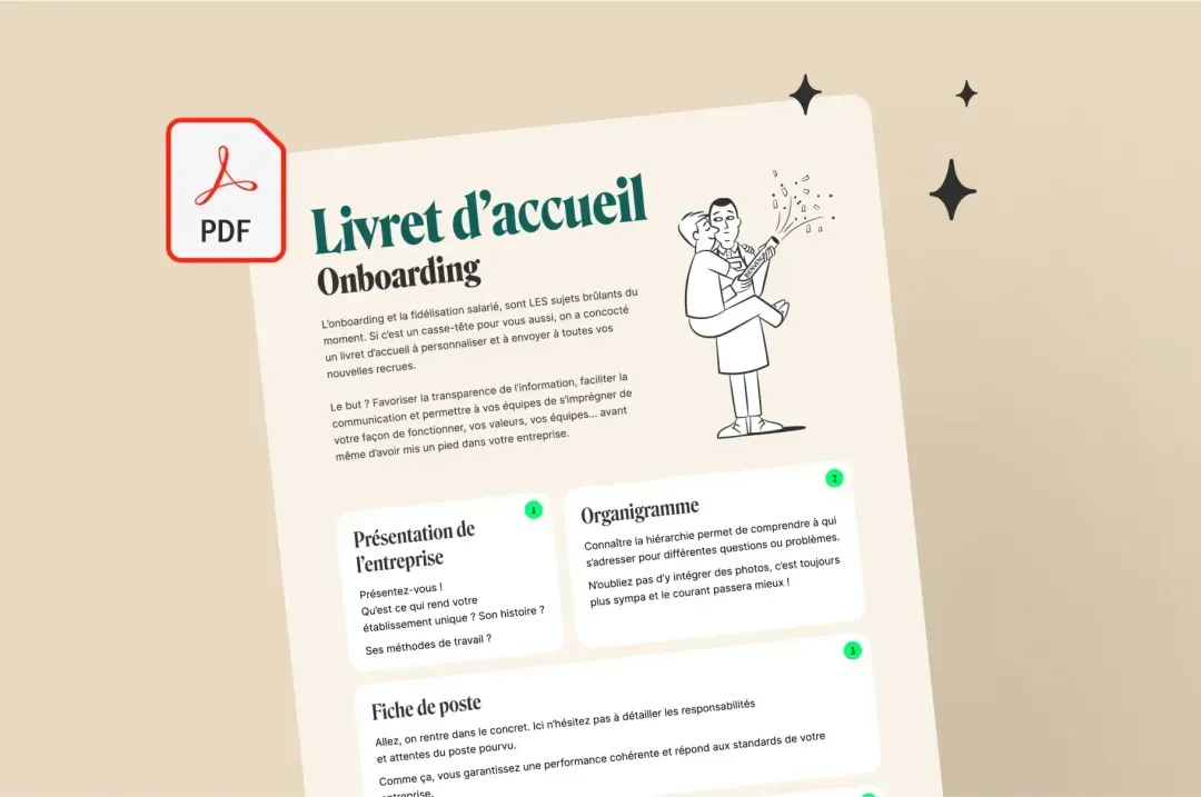 L’onboarding et la fidélisation salarié, sont LES sujets brûlants du moment. Si c’est un casse-tête pour vous aussi, on vous a concocté un livret d’accueil à personnaliser et à envoyer à toutes vos nouvelles recrues. Le but ?